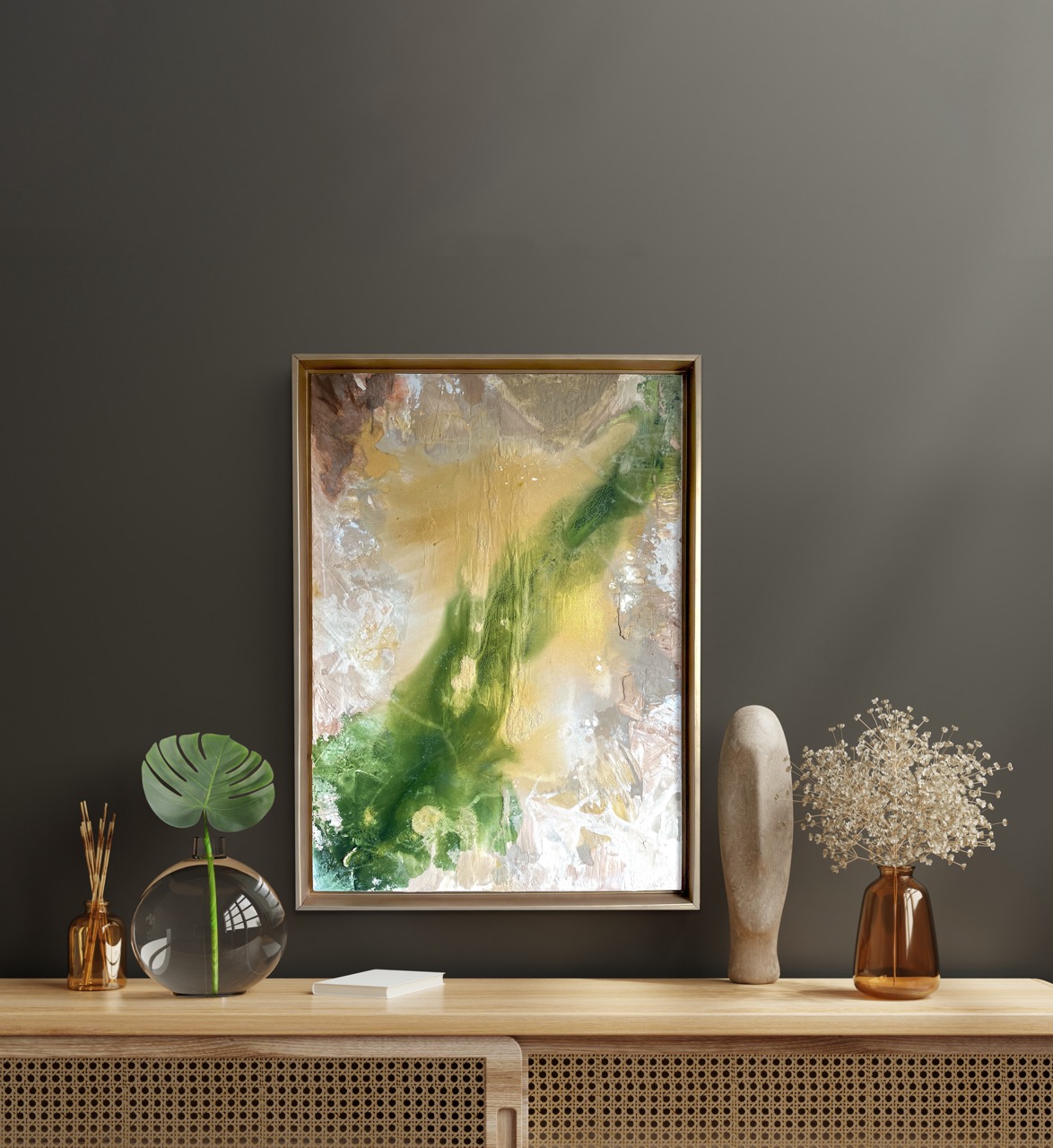 50×70 tuval üzerine akrilik boya ve alçı ile çalışılmıştır.